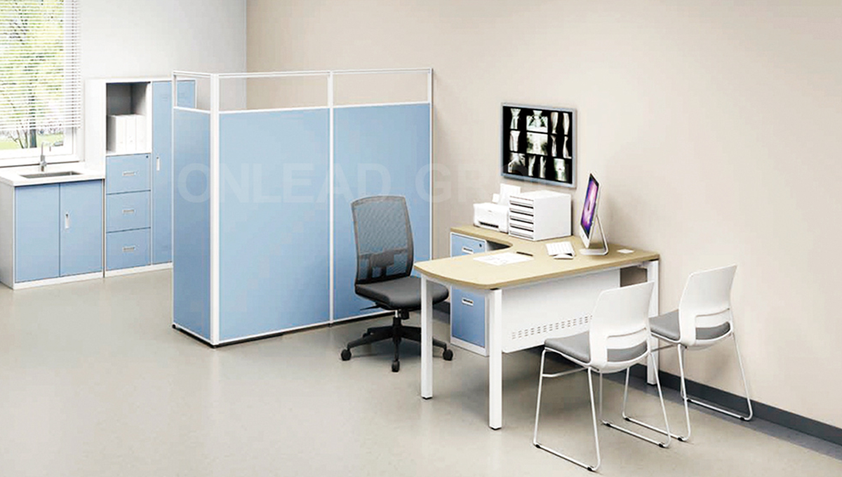 该区域需配置医生诊桌椅、患者椅、医用隔断帘、检查床、文件柜、洗手池柜、治疗车、观片灯、垃圾桶等医用家具,